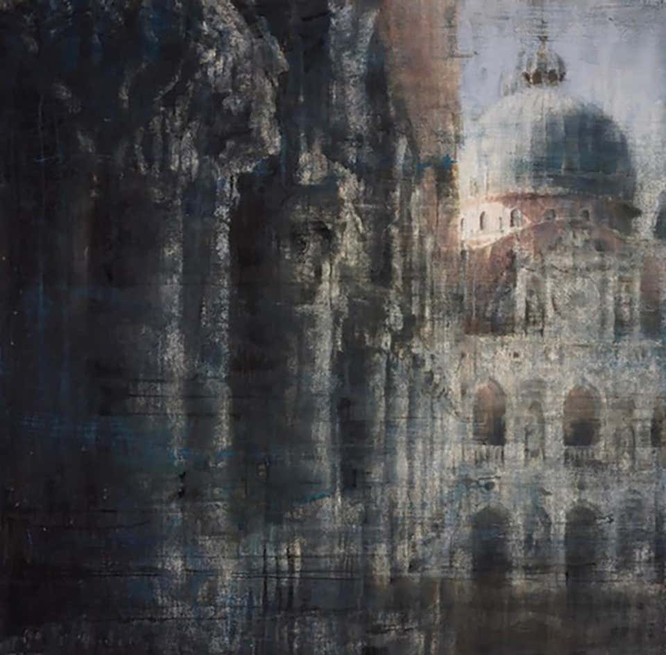 The Japanese born Chizuru Morii Kaplan presented large free hanging watercolors with architectural themes in her signature style.